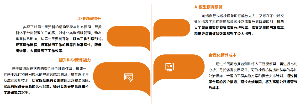 03 以面向桥隧检测项目的智能化管理模块,提供大数据存储、运维管理、统计分析,及其在安全预警方面的应用;云