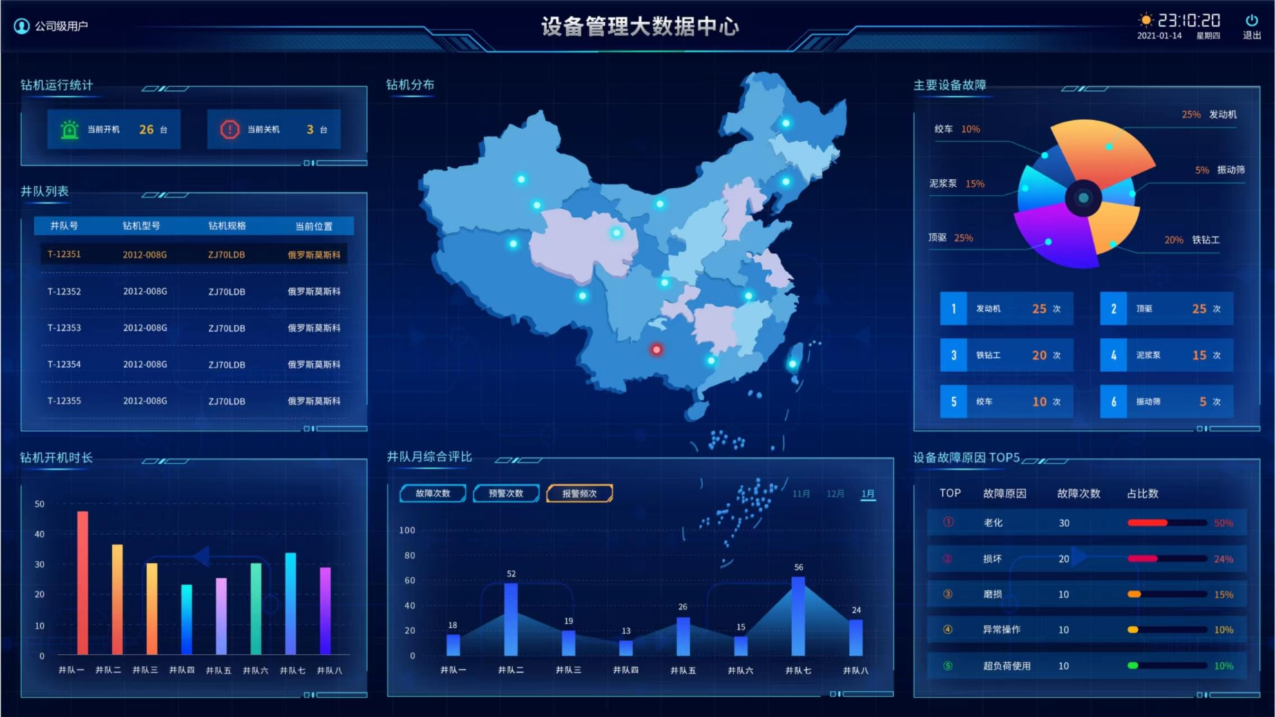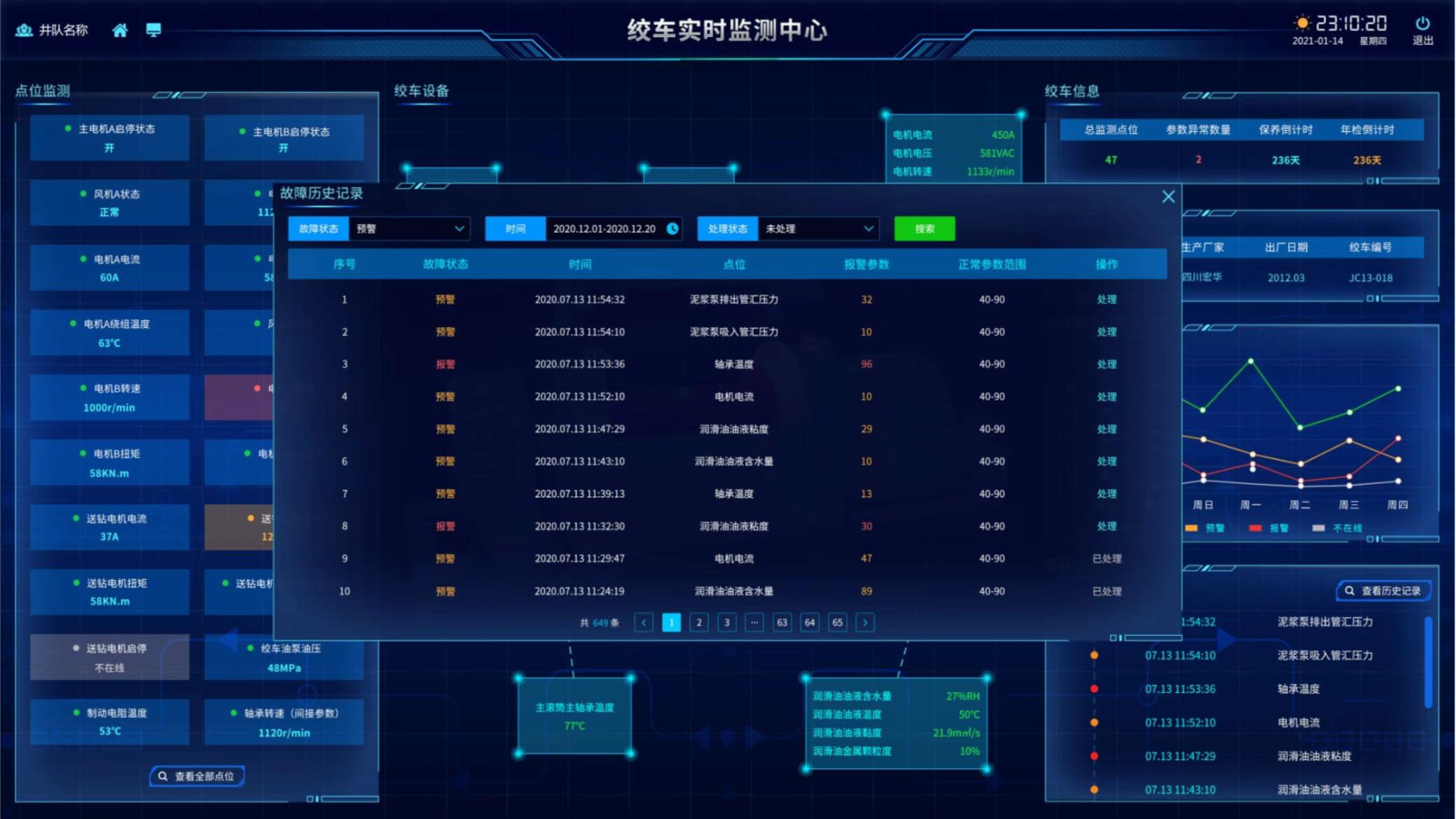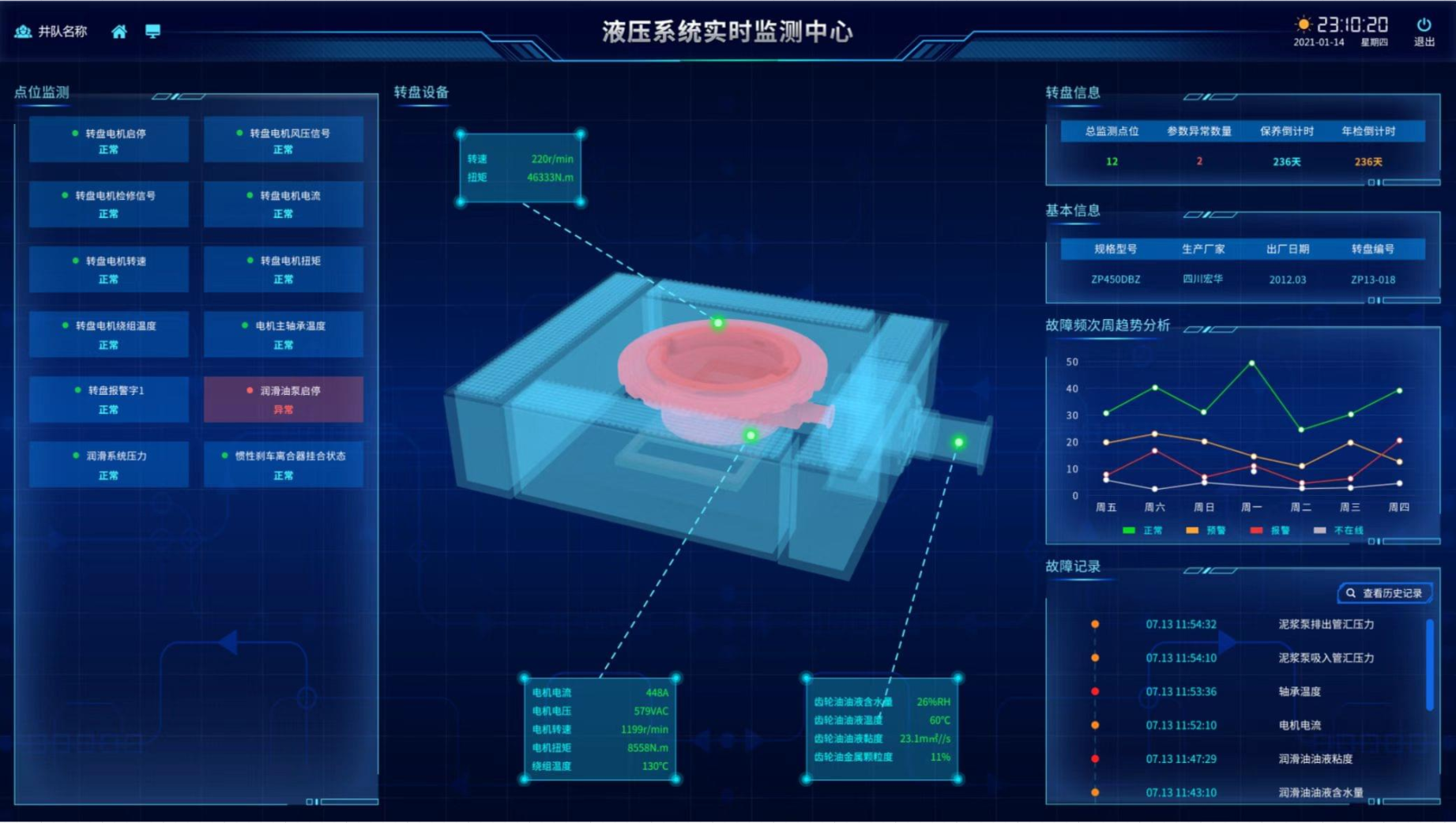 · 经过数据模型建立,全部设备运行状态一目了然,一旦作业设备出现故障问题便可快速定位设备所在;