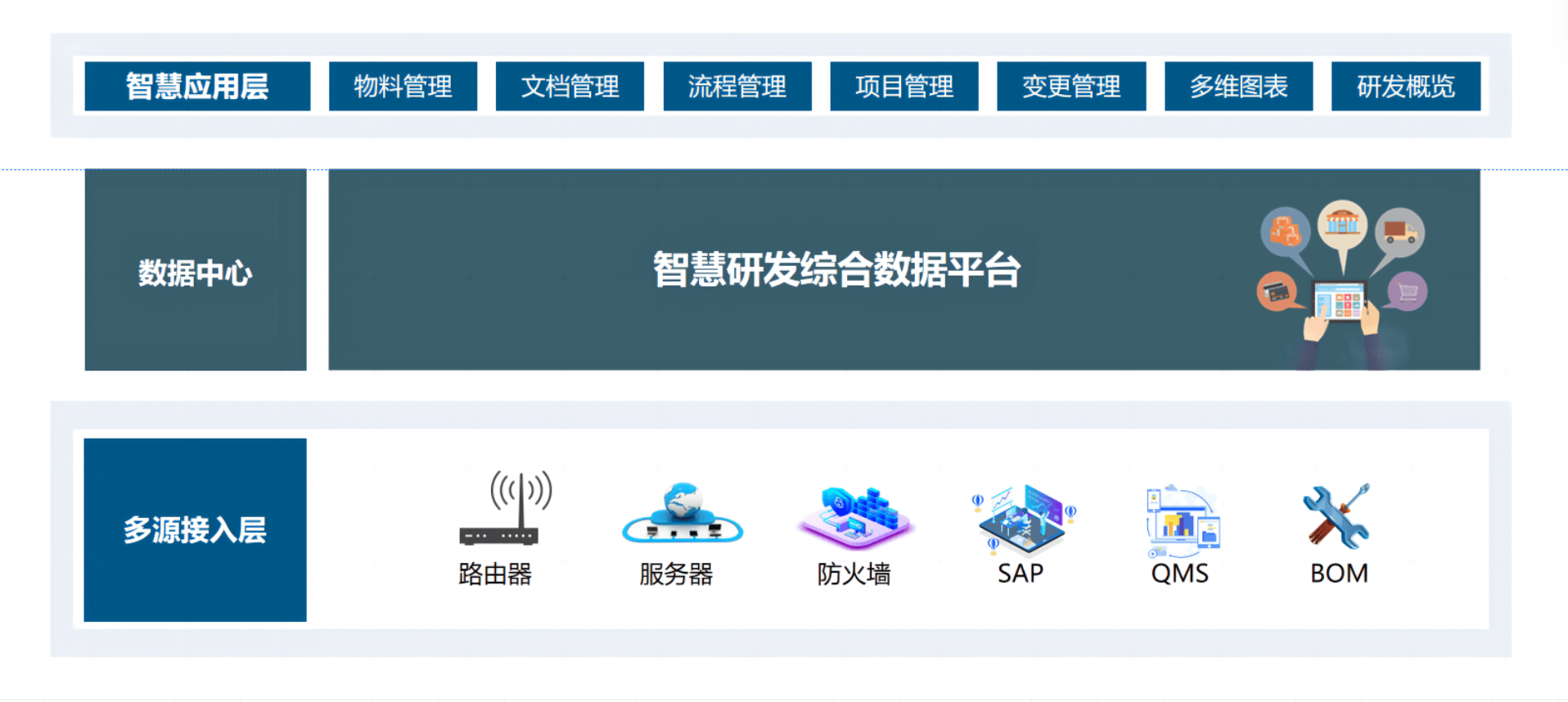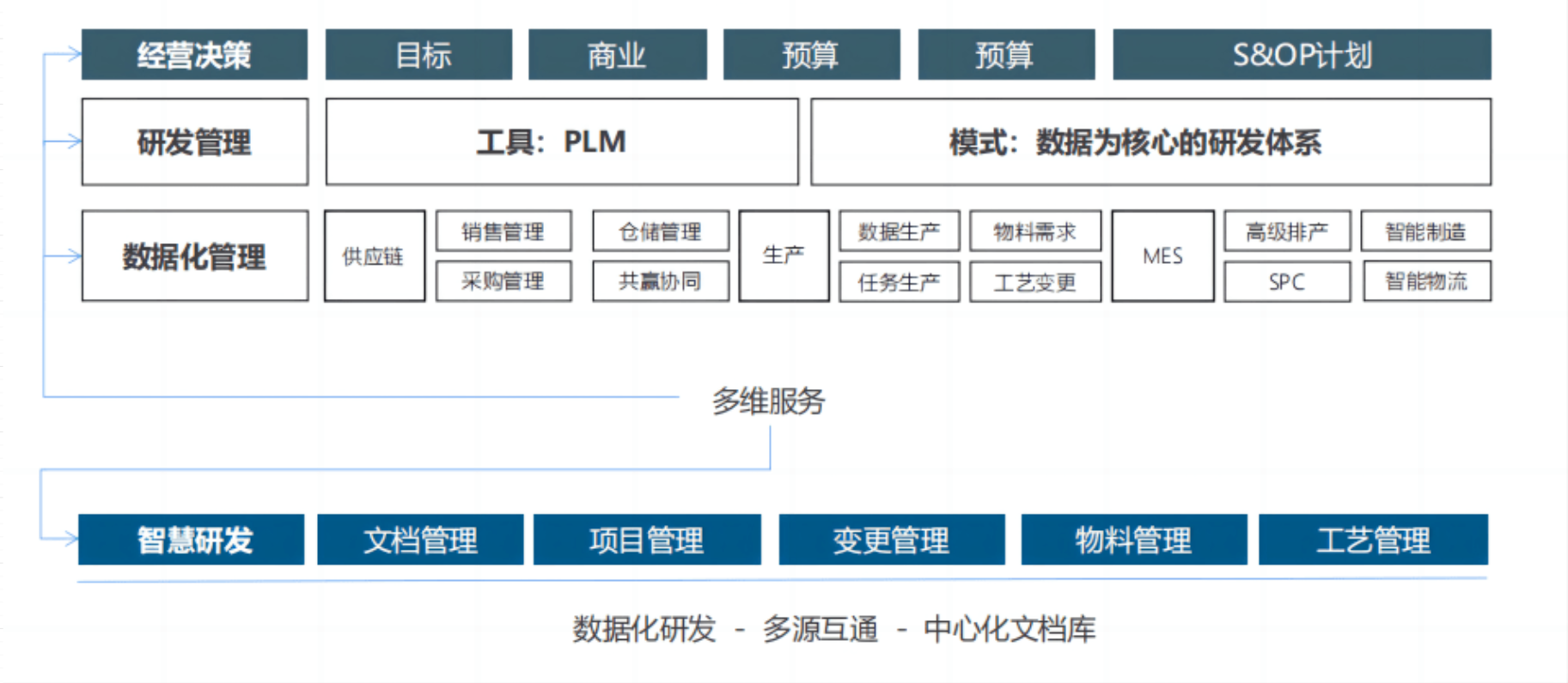 智慧生产是从工业4.0提出的新概念,是新形势下企业管理创新的一种新模式。是指充分利用流程管理、文档管理、人员管理、物料管理等新一代信息化管理方式,为企业研发提供一个安全、清晰、便利的研发环境,充分与ERP,QMS,MES等系统打通 连接,从而形成基于信息化、 智能化的企业管理与研发的新型管理模式。